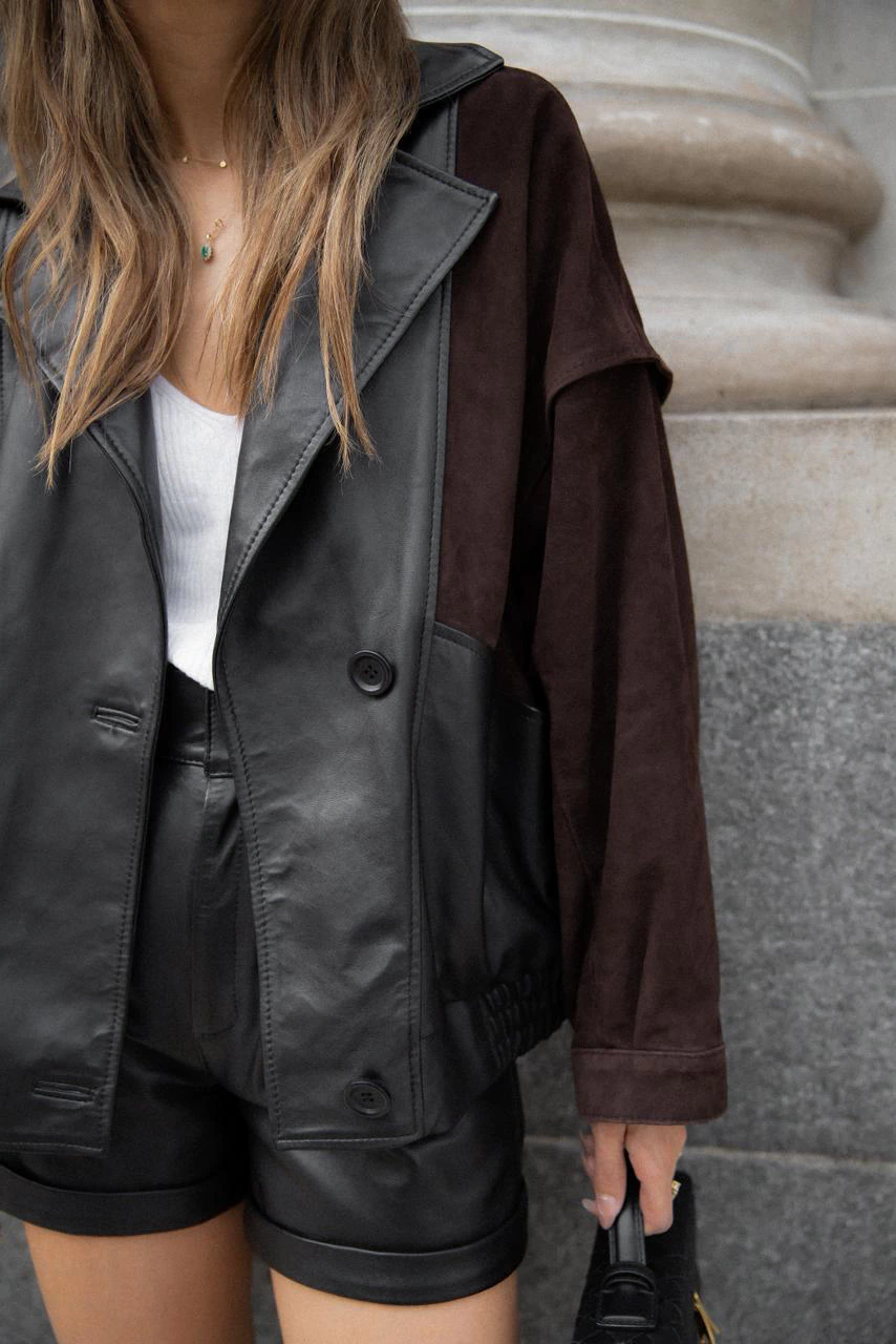 Cuero ovino italiano | Forrería interna | combina cuero y gamuza con botones al tono